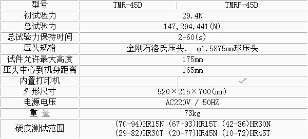 產(chǎn)品概述: TMR-45D電動表面洛氏硬度計電動表面洛氏硬度計采用自動加卸試驗力機(jī)構(gòu),洛氏硬度計使用方法,試驗力變換由變荷手輪的旋轉(zhuǎn)而獲得,洛氏硬度計華銀,操作簡便迅速,洛氏硬度計調(diào)整,除表盤對零外,洛氏便攜式硬度計,沒有人為的操作誤差,濰坊洛氏硬度計廠家,具有很高的靈敏度、穩(wěn)定性 功能特點: TMRP-45D數(shù)顯表面洛氏硬度計是集機(jī)、電一體化的高新技術(shù)產(chǎn)品,洛氏硬度計測頭,可進(jìn)行表面洛氏硬度測試。該儀器造型新穎、美觀。直觀的LCD液晶屏顯示裝置,洛氏塑料硬度計,是普及型表面洛氏硬度計的升級換代產(chǎn)品。 該硬度計適用硬質(zhì)合金、滲碳鋼、淬火鋼、硬鑄鐵及軟鋼、鋁合金、銅合金和可鍛鑄鐵的硬度的測定。 技術(shù)參數(shù):