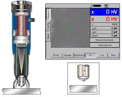 TIV(通過(guò)壓痕觀察)法是建立在維氏硬度檢測(cè)之上的;此方法通過(guò)特殊的光學(xué)方法“看穿” 維氏金剛石。,當(dāng)探頭壓人在材料的同時(shí),壓痕的圖片就被直接、自動(dòng)并迅速地進(jìn)行傳輸和評(píng)估,儀器通過(guò)壓痕,讀出測(cè)量結(jié)果。