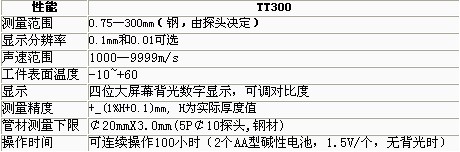 可選附件: 1、TT300/TT100A/TT310/TT320/TT340系列超聲波測厚儀探頭參數(shù) 2、耦合劑 3、通訊軟件 4、通訊電纜 5、打印機(jī)