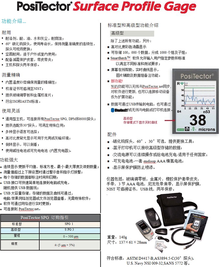 美國 DeFelsko公司新推出的PosiTector SPG表面粗糙度測量儀,測量準確,菜單方便。分為SPG1 數顯表面粗糙度儀標準型和SPG3 數顯表面粗糙度儀高級型。兩種型號都帶統計功能,隨著測量的進行會顯示統計值,三豐粗糙度儀價格,進行滾動統計。此功能為大面積區(qū)域的評估節(jié)省了時間,mahr粗糙度儀,快速建立通觀的、平均 的粗糙度數值。