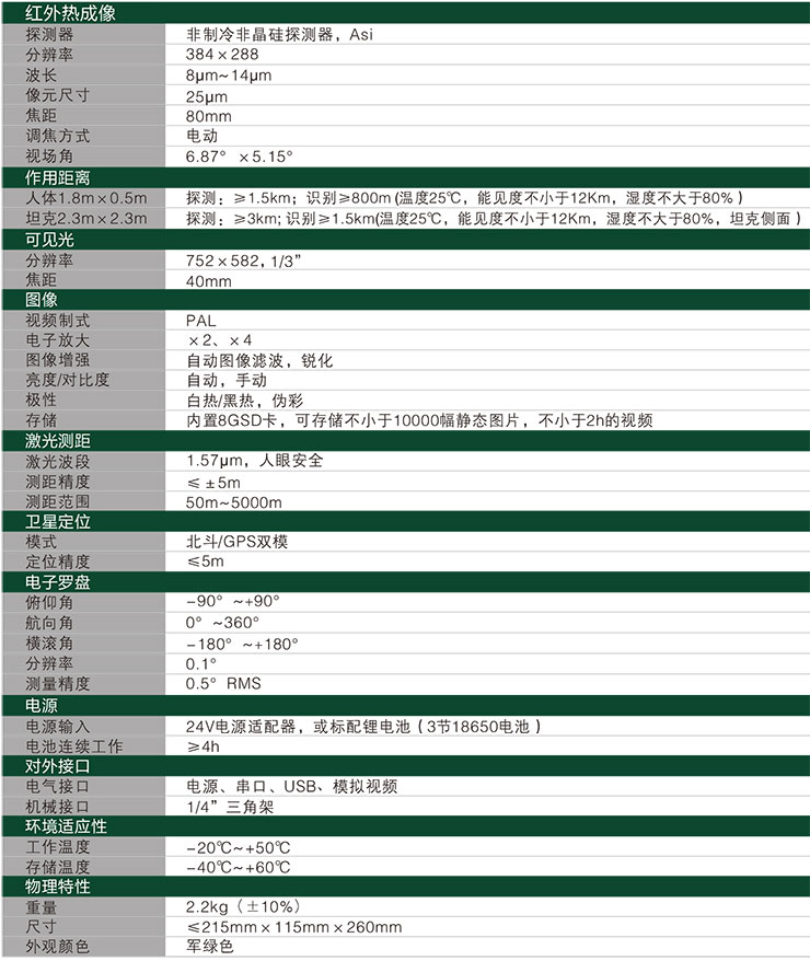 產(chǎn)品特點(diǎn) 功能強(qiáng)大 紅外熱成像、可見光、人眼安全激光測距機(jī)、電子羅盤、北斗/GPS、存儲(chǔ)系統(tǒng)于一體,意大利紅外熱像儀,可晝夜精確定位目標(biāo)