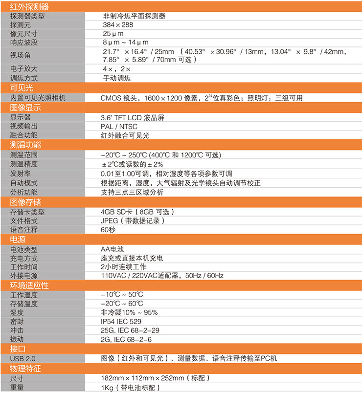 產(chǎn)品特點(diǎn) 靈活的電池適配性 隨處可見(jiàn)的普通AA電池可保證高效持續(xù)的工作效率 移動(dòng)式SD卡儲(chǔ)存 4G容量?jī)?chǔ)存卡能夠輕松儲(chǔ)存大量圖片和錄像 內(nèi)置照明燈 可在低照明環(huán)境下拍攝清晰可見(jiàn)光圖片 四種手動(dòng)鏡頭可選 以最少的投入便能夠滿足用戶不同的需求應(yīng)用 實(shí)時(shí)錄像 連接電腦可實(shí)時(shí)錄制紅外視頻,夜視紅外熱像儀,便于后期觀看及分析