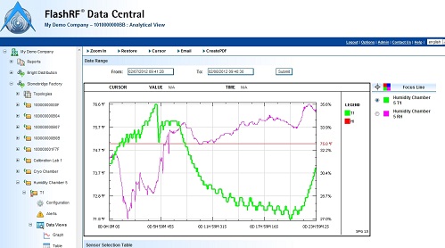 FlashRF 數(shù)據(jù)中心 DeltaTrak公司的FlashRF數(shù)據(jù)中心是基于云基礎應用技術,,它使系統(tǒng)有了更大的視圖和本地安裝的2.4 GHz射頻無線溫濕度網(wǎng)絡監(jiān)測的控制。 FlashRF 數(shù)據(jù)中心是通過云技術訪問所有現(xiàn)在網(wǎng)絡瀏覽器并且提供易于使用結合了外部設施地圖、 記錄議溫度圖表和分層設施的網(wǎng)絡結構的界面。應用程序非常直觀使得應用一目了然易于操作。DeltaTrak 的 FlashRF 數(shù)據(jù)中心解決方案允許互聯(lián)網(wǎng)用戶訪問其溫度數(shù)據(jù)在任何時間以向顧客提供更好的產(chǎn)品質(zhì)量的可見性。警報可以建立在溫度劇增并且通報可以和電子郵件或短信同時發(fā)出。
