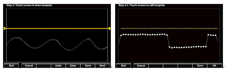 許多的元件或系統(tǒng)制造業(yè)者在做質(zhì)量管制或是出貨生產(chǎn)時,需要良品與不良品的報告分析。GDS-300/GDS-200系列示波器依然保有固緯示波器原有GO/NOGO的功能,可以根據(jù)量測的波形,建立相對應(yīng)的波形模板,以進(jìn)行通過與非通過的結(jié)果計算。除此之外,此示波器亦可進(jìn)行模板自我編輯的功能,使用者可以根據(jù)測試或環(huán)境條件來任意編輯模板之型態(tài),亦可訂立不同之上下界模板,使得GO/NOGO的功能更加多元化以及人性化。