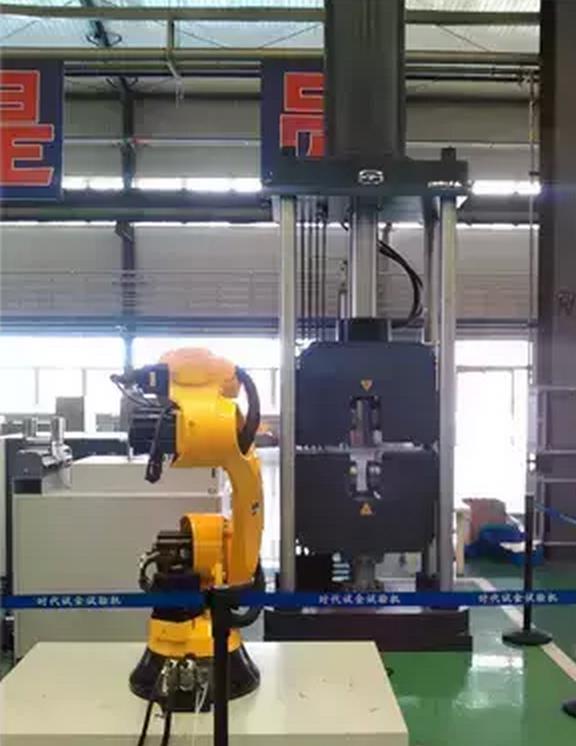 2000kN全自動微機控制電液伺服拉力試驗機是目前國內(nèi)最為先進的自動化試驗系統(tǒng)應用了80kg六自由度機器人、平推夾具、全自動引伸計、尺寸測量平臺等,各部分全部由我公司自主研發(fā)。在整機測控系統(tǒng)的協(xié)調(diào)控制下實現(xiàn)試樣錄入與管理自動送料、測量試樣尺寸、裝夾試樣、自動完成拉伸試驗自動測量控制各種信號試驗數(shù)據(jù)自動分析及上傳自動檢測與處理各種狀態(tài)及異常從而實現(xiàn)中厚板試樣的無人值守批量全自動試驗。可不間斷、高精度地完成批量試樣的材料力學性能測試。