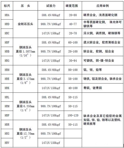 硬質(zhì)鋁合金采用HRB中等硬度的鋁合金采用HRE、HRF軟的鋁合金或純鋁采用HRH。 較薄的鋁板或薄壁鋁管采用HR15T、HR30T、HR45T。