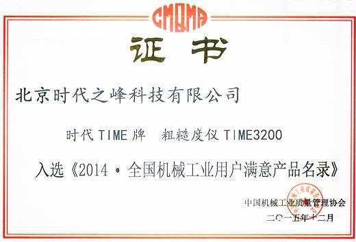 祝賀:時(shí)代TIME牌 粗糙度儀TIME3200入選《2014▪全國(guó)機(jī)械工業(yè)用戶滿意產(chǎn)品名錄》