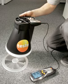 用于管道測量的流速傳感器都帶有伸縮桿,,便于在大型空氣管道中進行操作。如果需要,還可以使用測量流速的探頭來測量溫度和濕度。可以根據(jù)應(yīng)用需求選擇熱敏探頭、葉輪探頭或皮托管來測量管道中的流速。 測量室內(nèi)空氣質(zhì)量(二氧化碳)![]() 高濃度的二氧化碳會導(dǎo)致室內(nèi)空氣質(zhì)量變差,從而使人體感覺疲倦,無法集中精神,甚至生病。因此,為了保證良好的室內(nèi)空氣質(zhì)量,二氧化碳濃度一般不應(yīng)超過1 000 ppm。參考范圍為700到1500 ppm。 IAQ探頭(訂貨號0632 1535)尤為適合監(jiān)控室內(nèi)空氣質(zhì)量。此探頭可以同時記錄二氧化碳濃度、溫度和相對濕度。 在通風(fēng)管道內(nèi)使用皮托管進行測量為了確保通風(fēng)和空調(diào)系統(tǒng)的正常功能,對通風(fēng)管道內(nèi)的空氣流速進行檢測是非常重要的。 testo 435-3的內(nèi)部壓差傳感器用來測量高流速或高污染的氣流,皮托管測量范圍從0到64米/秒的空氣流速。testo 435-3可以同時顯示壓力、流速和體積流量。 在儀器背后的磁貼可以實現(xiàn)免提操作。 過濾器上壓差測量![]() 空調(diào)系統(tǒng)配有過濾器,可以防止室外空氣中的灰塵進入室內(nèi)。應(yīng)定期檢查這些過濾器,以確保它們運行良好。為此,,需要測量過濾器前后的壓力差。如果壓差過大,說明過濾器被污染,需要更換。 testo 435-3內(nèi)置壓差傳感器,測量范圍0到25 hPa。在壓差測量過程中會進行溫度補償,以得到精確讀數(shù)。在儀器背后的磁貼可以實現(xiàn)免提操作。 熱輻射的測量![]() 多功能測量儀testo 435能夠幫助您可靠地測量熱舒適度。連接一個熱輻射黑球探頭(訂貨號0602 0743),測量輻射熱量(也就是有效或感知溫度)。熱輻射黑球探頭測量的有效溫度與人體感知溫度的差值最好不超過± 0.41 K。 室內(nèi)溫度(空氣溫度和有效溫度)的測量要采取在同一個地方,相同的條件,如室內(nèi)空氣流速的一致的情況下進行。 測量空氣和表面溫度為了讓人體感覺舒適,達到最佳狀態(tài),房間內(nèi)必須調(diào)節(jié)空調(diào)運行工況。除了建筑結(jié)構(gòu)因素和個體感覺,以下因素也會在很大程度上影響室內(nèi)空氣的舒適度:室內(nèi)空氣溫度以及墻壁、窗戶、底板和天花板的表面溫度。 testo 435提供滿足不同應(yīng)用的熱電偶探頭。表面探頭(訂貨號0602 0393)和空氣濕度探頭(訂貨號0636 1712)很適合分析結(jié)露問題和霉變的情況。 出風(fēng)口風(fēng)速測量![]() 為了確保系統(tǒng)的高效使用,每個管道的進出口體積流量都應(yīng)符合要求,,這是一個基本的前提條件。 在出風(fēng)口處,,適合采用直徑100mm的葉輪風(fēng)速探頭來測量體積流量(訂貨號0635 9435),因為它們可以對較大面積的流速進行綜合測量,從而排除通風(fēng)格柵所產(chǎn)生的干擾(回路方法)。 在空氣格柵和提升閥的抽風(fēng)口或出風(fēng)口進行測量時,適合采用我們的風(fēng)量罩套裝(訂貨號0563 4170)以及直徑100mm葉輪風(fēng)速探頭(訂貨號0635 9435)。通過風(fēng)量罩來記錄整體體積流量值,不需要根據(jù)流速和面積進行計算。這種流量測量方法簡單、可靠。 一氧化碳測量![]() 一氧化碳(CO)是一種無味、無色、無刺激性的氣體,但是有毒。它是在熱源和燃機內(nèi)的煤、木頭、油、天然氣等含碳物質(zhì)燃燒不充分情況下產(chǎn)生的。一氧化碳濃度增加速度很快,尤其是在沒有足夠氧氣的情況下,并可能對健康產(chǎn)生不良影響。 即使環(huán)境空氣中含有微量的一氧化碳,環(huán)境一氧化碳探頭(訂貨號0632 1235)和testo 435-1也能夠檢測到。