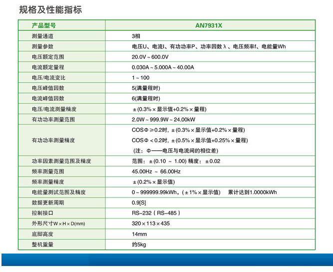 AN7931X 三相電參數(shù)綜合測(cè)量儀