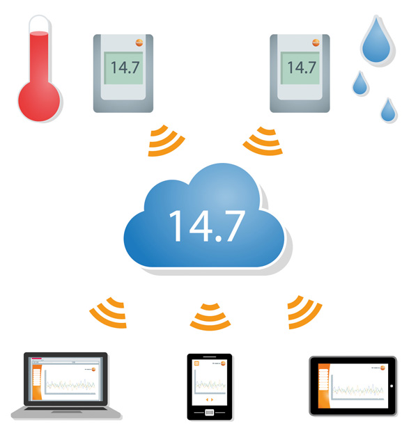 要想使用testo Saveris 2 WiFi溫濕度記錄儀 2,你需要德圖云服務(wù)器使用許可證。因?yàn)槟闼械臏囟群蜐穸葴y(cè)量數(shù)據(jù)都存儲(chǔ)在德圖云服務(wù)器上。只要通過(guò)德圖云服務(wù)器,你就可以從任何地方調(diào)用你的測(cè)量數(shù)據(jù),并且在測(cè)量數(shù)據(jù)達(dá)到臨界值時(shí)接收到警報(bào)。