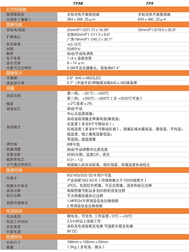 TP9是一款640×480分辨率的智能手持測(cè)溫產(chǎn)品。該產(chǎn)品具有觀察場(chǎng)景細(xì)節(jié)更加細(xì)膩,WIFI視頻傳輸,高德紅外熱像儀,配備高分辨率的OLED取景器,紅外熱像儀的作用,5.7寸的高分辨率彩色液晶觸控屏,具有陽(yáng)光下可視的特點(diǎn),紅外熱像儀焦距,鎂鋁合金的金屬外殼鑄件,菲力爾紅外熱像儀,為用戶提供堅(jiān)固耐用儀器的同時(shí)還帶來(lái)了超凡的尊貴感受。
